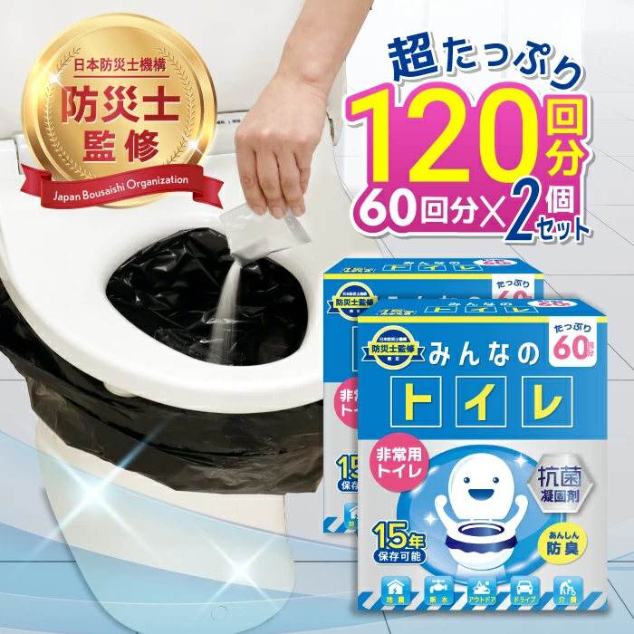 凝固剤や消臭剤: 排泄物を固めたり、臭いを抑えるための凝固剤や消臭剤を用意しておくことで、トイレが使用できなくても衛生環境を保つことができます。