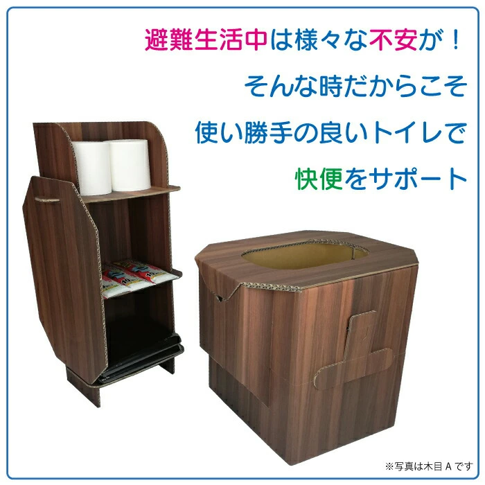 災害等の非常時に自宅や避難所のトイレが使えなくても、普段使用しているトイレと変わらない使用感で快適な排泄をサポートする、ダンボール製の非常用トイレ(簡易トイレ)です。